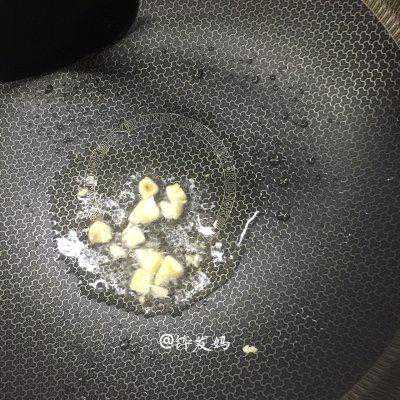 6、放入蒜头丁爆炒一会儿