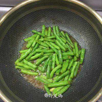 7、放入四季豆,稍炒片刻,倒入适量清水,盖上锅盖