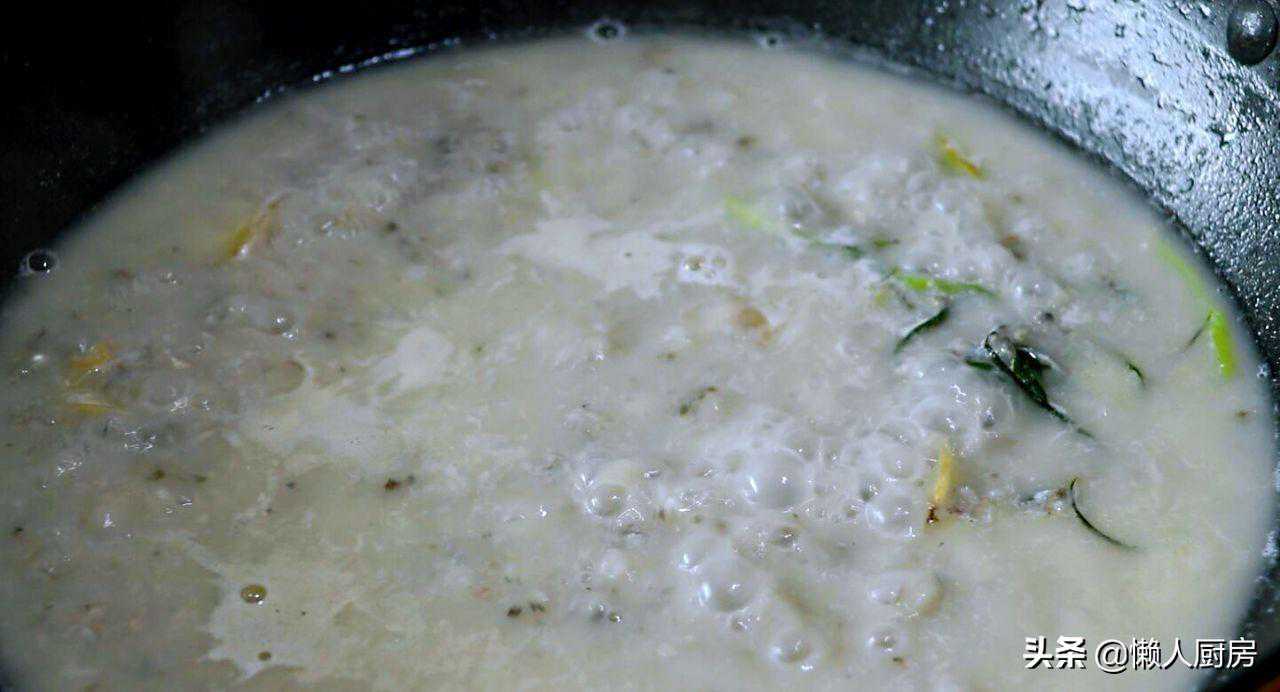待鱼汤煮至浓稠发白的时候,加盐和白胡椒粉调味。