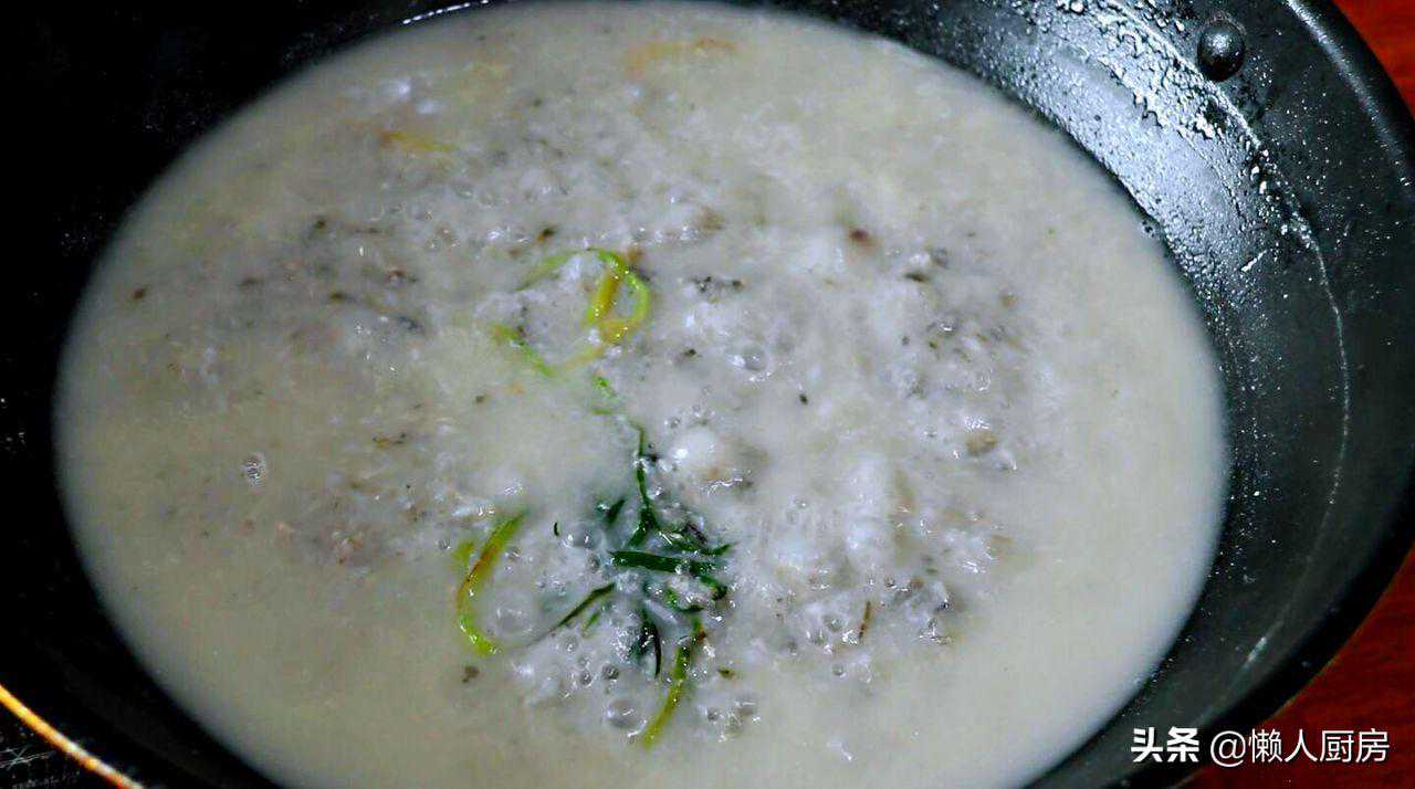 待鱼汤煮至浓稠发白的时候,加盐和白胡椒粉调味。