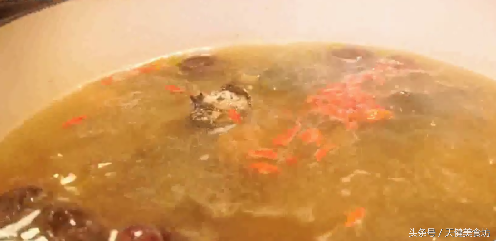 煲约3.5个小时左右,我们揭开锅盖,加入一小抓的枸杞,再煲约半小时!一道补气益血,好喝又营养丰富的乌鸡汤就煲好了,据说乌鸡汤还有美容的功效,所以女士们可以多喝哦!学会了这道汤的小伙伴,如果喜欢就赶紧试试看吧!