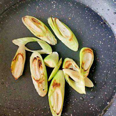 4、锅里加油小火煎葱