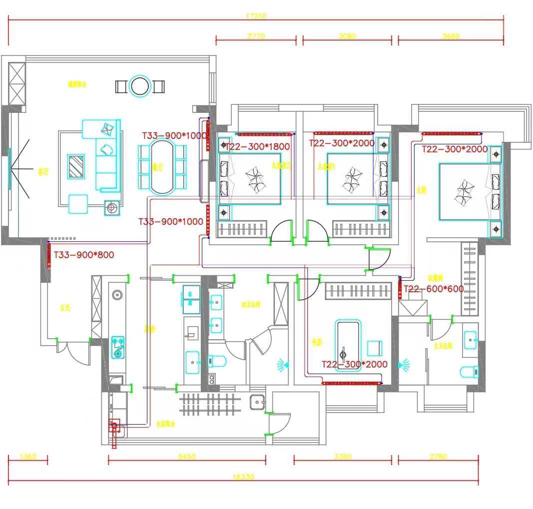 在这里,我也是结合现场,但是是以空间需要而进行分布暖气片,所以使用到了8组暖气片,比如主卧有一个衣帽间,通常这里是忽略的,但是我在衣帽间这里考虑了一个暖气片,这样的优点是热量分布更均匀,缺点是用户初期安装费要多给几百元。