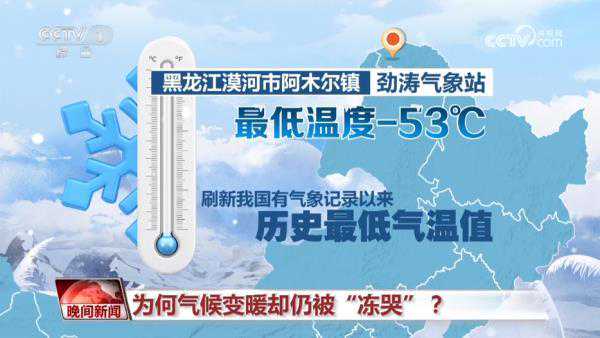 2023年1月下旬,三次寒潮接连袭击我国,黑龙江漠河市阿木尔镇劲涛气象站最低温度达到-53℃,刷新我国有气象记录以来历史最低气温值;