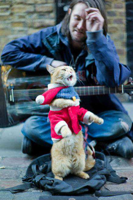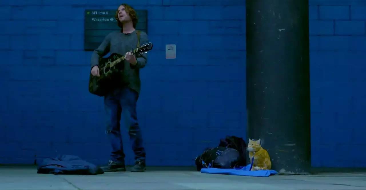 随着萌物鲍勃的陪伴,詹姆斯在街头弹唱时已不像从前那样无人问津,会有不少人驻足。